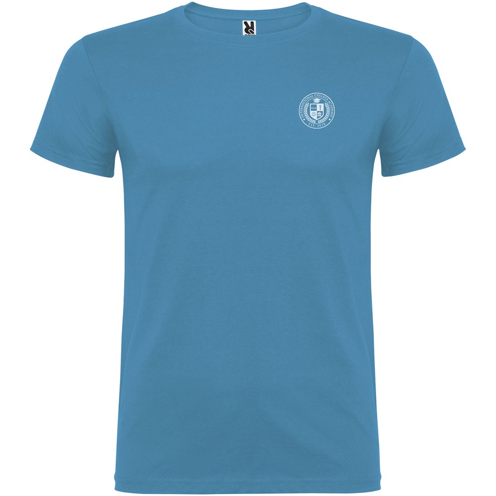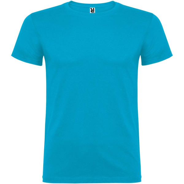 Kurzärmeliges T-Shirt mit doppellagigem Rundhalsausschnitt aus Elasthan, hergestellt aus mit Seitennähten. Verstärkte und verdeckte Nähte am Kragen. Herausnehmbares Etikett. Das Modell ist 120 cm groß und trägt Größe 5/6.