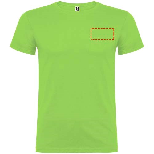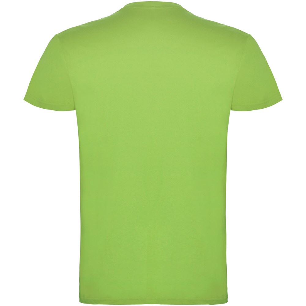 Kurzärmeliges T-Shirt mit doppellagigem Rundhalsausschnitt aus Elasthan, hergestellt aus mit Seitennähten. Verstärkte und verdeckte Nähte am Kragen. Herausnehmbares Etikett. Das Modell ist 120 cm groß und trägt Größe 5/6.