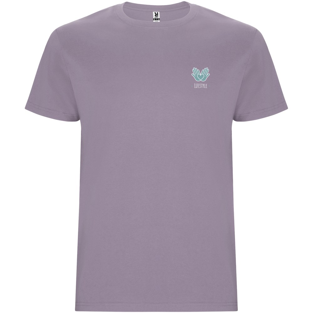 Schlauchförmiges kurzärmeliges T-Shirt. Rundhalsausschnitt mit Elasthan. Seitennähte. Herausnehmbares Etikett.