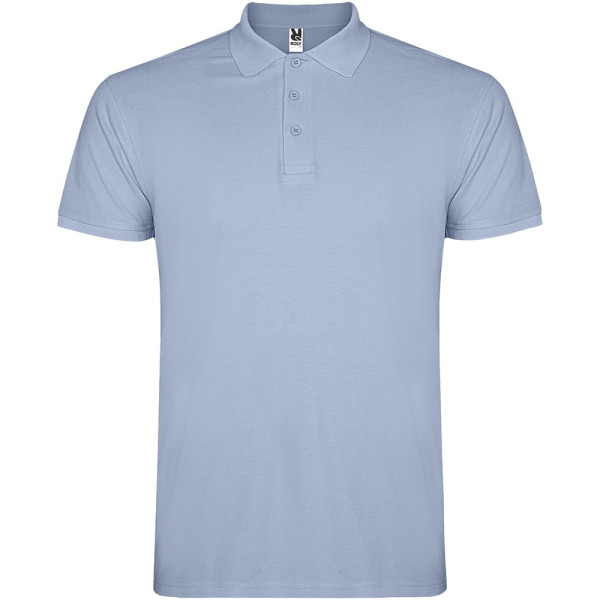 Kurzärmeliges Poloshirt für Herren. Verstärkte und verdeckte Nähte am Innenkragen. 1x1 Rippstrickbündchen an Ärmeln und Kragen. Seitennähte. 3-Knopfleiste und Seitenschlitze. Optionale Tasche. Herausnehmbares Etikett. Das Modell ist 185 cm groß und trägt Größe L.