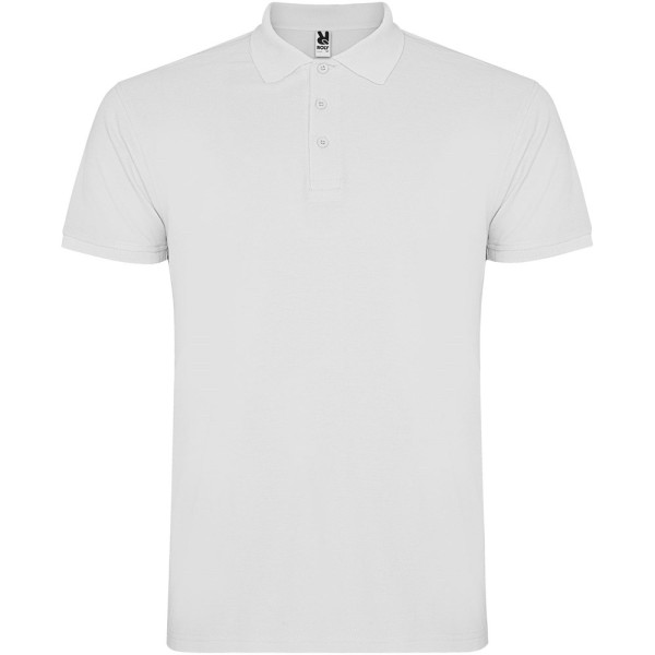 Kurzärmeliges Poloshirt für Herren. Verstärkte und verdeckte Nähte am Innenkragen. 1x1 Rippstrickbündchen an Ärmeln und Kragen. Seitennähte. 3-Knopfleiste und Seitenschlitze. Optionale Tasche. Herausnehmbares Etikett. Das Modell ist 185 cm groß und trägt Größe L.