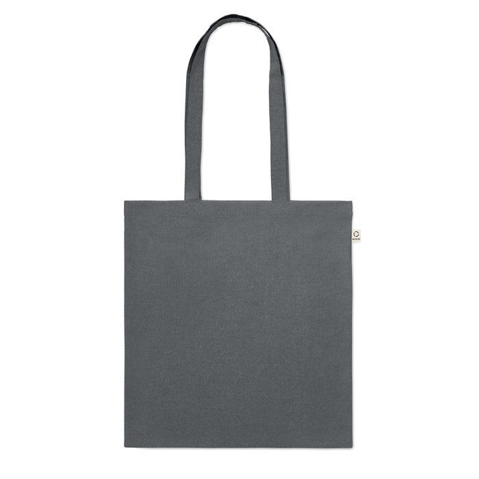 Einkaufstasche aus recycelter Post-Consumer-Baumwolle (70 % recycelte Baumwolle und 30 % RPET) mit langen Tragegriffen. 140 g/m². Artikel kann nach dem Bedrucken schrumpfen.