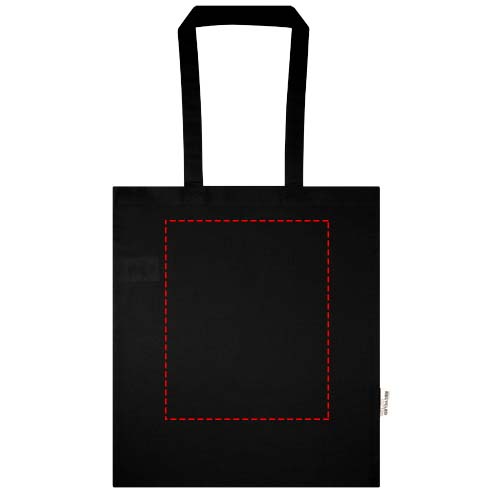 Die Peru Blend Tragetasche besteht zu 60 % aus GRS zertifizierter Recyclingbaumwolle und zu 40 % aus GRS zertifiziertem RPET mit einer Stoffdichte von 180 g/m². Sie ist robust und strapazierfähig und somit ideal für den täglichen Gebrauch. Sie verfügt über ein großes Hauptfach, das maximale Sichtbarkeit für jedes Logo bietet. Das robuste Material ermöglicht den Transport schwererer Gegenstände (bis zu 5 kg). Die 30 cm langen Schultergriffe sorgen für bequemes Tragen. Die für diese Tragetasche verfügbaren Druckverfahren sind ebenfalls GRS zertifiziert, sodass eine transparente und vollständig zertifizierte Lieferkette garantiert ist.