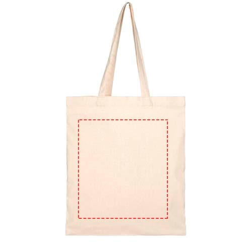 Tragetasche aus 210 g/m² recycelter Baumwolle und recyceltem Polyester. Recycelte Baumwolle wird aus Verbrauchsabfällen hergestellt, die während des Schneidevorgangs in Textilfabriken anfallen. Diese Tasche kann zusammengefaltet werden und lässt sich somit leicht verstauen. Der perfekte Begleiter für eine Vielzahl von Aktivitäten wie Lebensmitteleinkäufe, Tagesausflüge oder Bastelprojekte. Aufgrund des Produktionsprozesses kann es zu geringfügigen Farbabweichungen des Produktes kommen. Diese Eigenschaft trägt deutlich zu einem authentischeren Erscheinungsbild bei. Abgesenkter Griff, Länge 31 cm. Belastbar bis zu 5 kg.