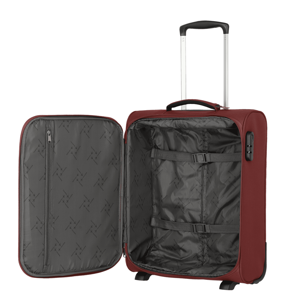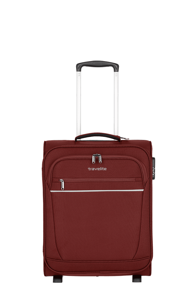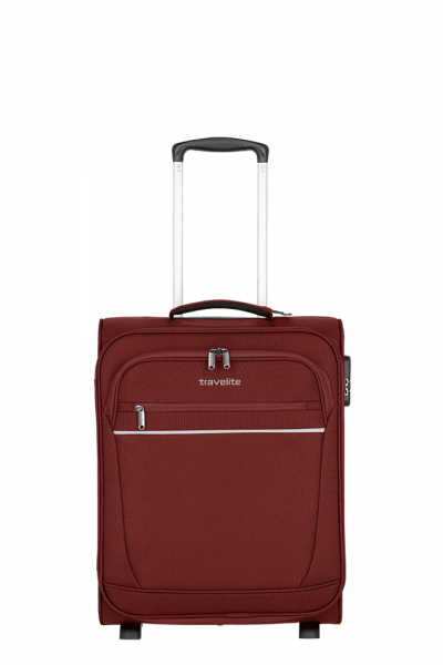 Ideal als Handgepäckstück: der Cabin von travelite. Der Weichgepäcktrolley besteht aus besonders widerstandsfähigem Polyester und wurde für den Einsatz als Bordgepäck entwickelt. Dank seiner kompakten Abmessungen ist er bei vielen Fluggesellschaften als Handgepäck einsetzbar. In den zwei großen Vortaschen finden die Bordkarten oder eine leichte Jacke Platz. Im Inneren überzeugt das Innenfutter in Kombination mit praktischen Packgurten, die Kleidung und Co. sicher an Ort und Stelle halten. Darüber hinaus gibt es ein zusätzliches Hemdenfach mit Reißverschluss im Deckel. Abgesichert wird das Hauptfach mit einem Kombinationsschloss, das vor Eingriffen von außen schützt. Dank der zwei Komfortrollen und des Teleskopgestänges lässt sich der Trolley ganz einfach über verschiedenste Untergründe ziehen. Cabin – einfach perfekt als Begleitung an Bord!