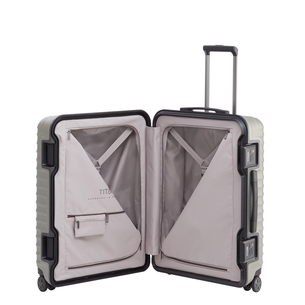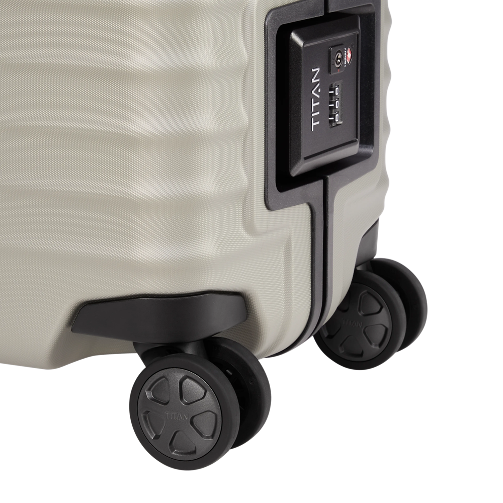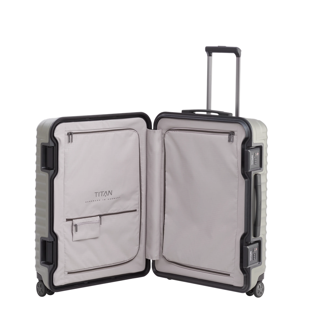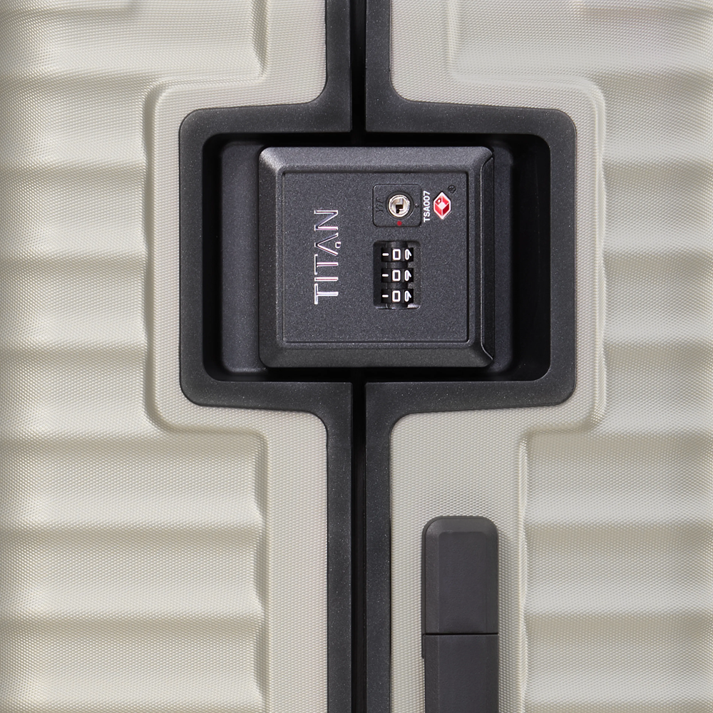 Eine meisterhafte Konstruktion, die eigens für TITAN entwickelt wurde: Zwei extra große Schlösser halten den gesamten Kunststoffrahmen fest zusammen. Auch unter extremen Belastungen. Für eine besonders leichte Handhabung unterwegs ist der Kabinentrolley mit nur einem Schloss versehen.