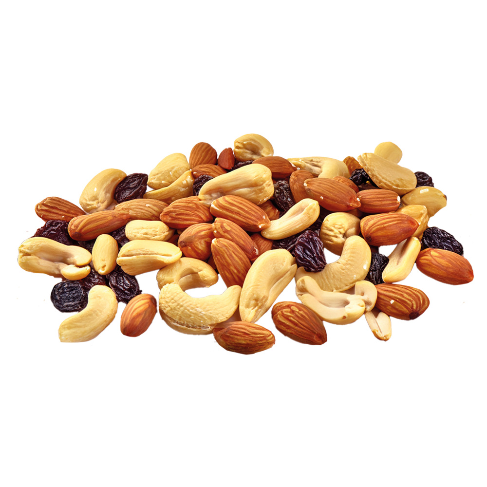 Eine kraftvolle Mischung aus gerösteten Erdnüssen, Cashewkernen, Mandeln und saftigen Rosinen. Dieser Snack liefert wertvolle Energie und ist der perfekte Begleiter für unterwegs oder für den nötigen Leistungsschub. , Geschmack: Erdnuss, Cashew, Mandel, R