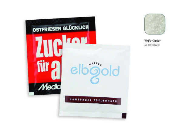 Das Zuckertütchen bietet eine großzügige Werbefläche und liefert eine genau portionierte Menge Süße. Ideal für jeden Anlass und perfekt für unterwegs. , Geschmack: Feinzucker weiss , VE: 1000 Stück
