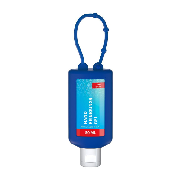 Handreinigungsgel, 50 ml Bumper blau, Body Label (R-PET)