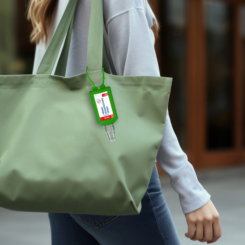 Hände-Desinfektionsspray (DIN EN 1500), 50 ml Bumper grün, Body Label (R-PET)