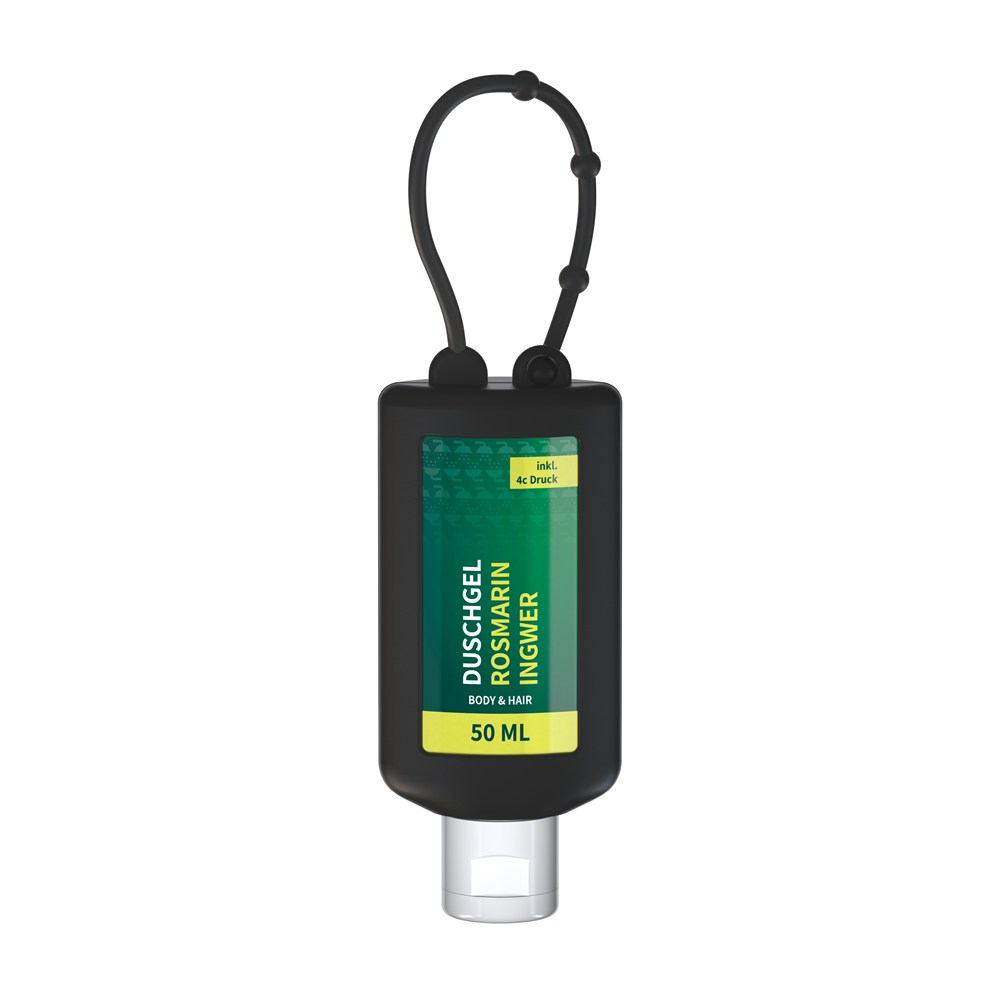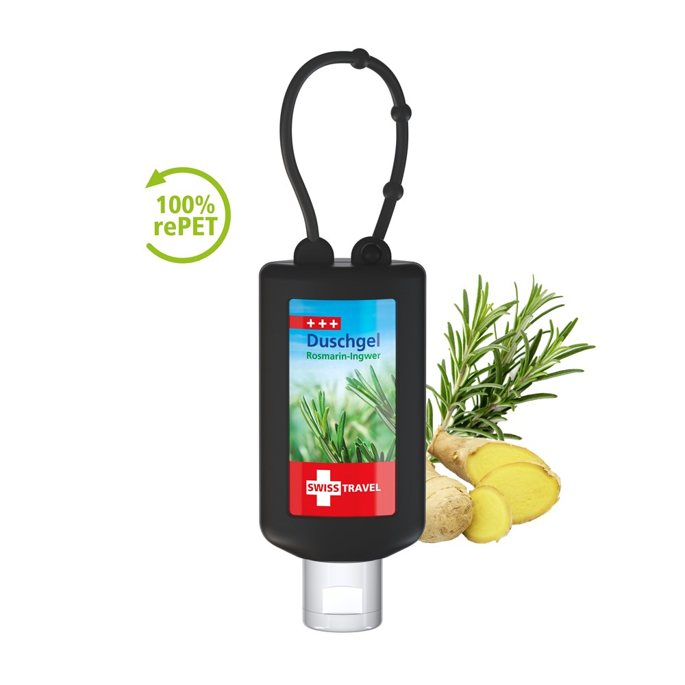Duschgel Rosmarin-Ingwer, 50 ml Bumper (schwarz), Body Label (R-PET)