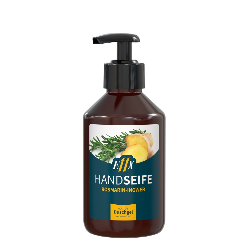 Der Mix aus Rosmarin und Ingwer regt mit seinem umwerfend würzig-frischen Duft die Sinne an und macht das Händewaschen zum Erlebnis! Es entsteht ein angenehmer Schaum, der die Hände schonend reinigt und zugleich pflegt. Die Flüssigseife macht sich auch in der Dusche hervorragend: Durch den Spender aus recyceltem PET besteht keine Bruchgefahr und man kann die Seife auch prima als Duschgel verwenden.