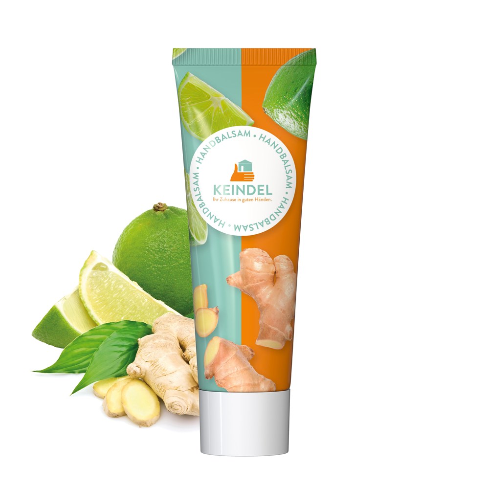 Handbalsam Ingwer-Limette, 25 ml Tube (weiß), mit Schraubverschluss (weiß), Hygiene-Versiegelung mit Originalitäts-Membran.