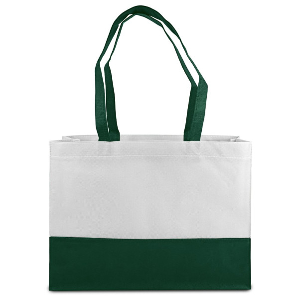 Die zweifarbige Tragetasche Roma, mit Boden- und Seitenfalte, ist zu 100 % aus reißfestem OEKO-TEX® Premium PP Non-Woven hergestellt. Sie trägt sich besonders bequem über der Schulter dank der langen Henkel und eignet sich hervorragend als Einkaufstasche. Als mittelgroße Tasche ist Roma der ideale Werbeträger für Drogerien, Apotheken und Sanitätshäuser. Mit ihrem farblich oder schwarz abgesetztem Sockel, der stets farblich zu den Henkeln passt, bietet Roma ein hervorragendes Preis-Leistungsverhältnis.