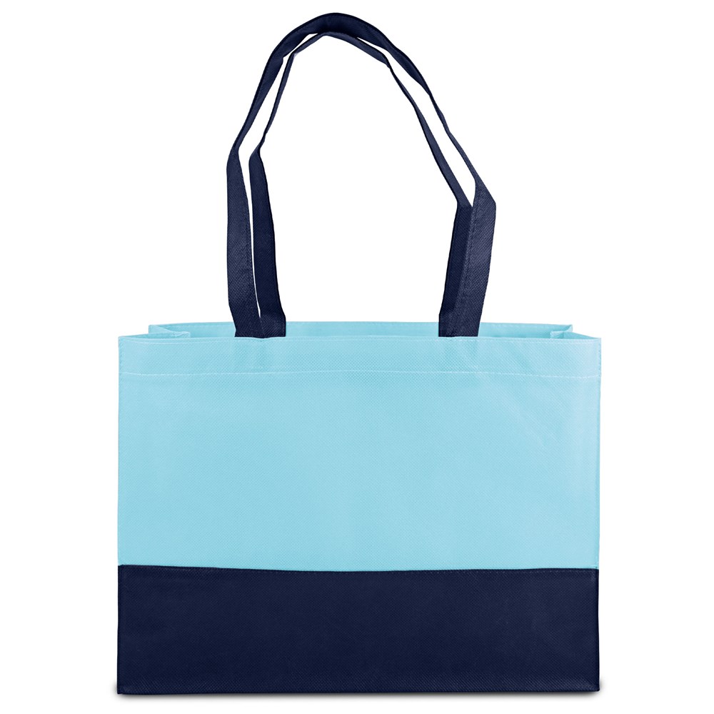 Die zweifarbige Tragetasche Roma, mit Boden- und Seitenfalte, ist zu 100 % aus reißfestem OEKO-TEX® Premium PP Non-Woven hergestellt. Sie trägt sich besonders bequem über der Schulter dank der langen Henkel und eignet sich hervorragend als Einkaufstasche. Als mittelgroße Tasche ist Roma der ideale Werbeträger für Drogerien, Apotheken und Sanitätshäuser. Mit ihrem farblich oder schwarz abgesetztem Sockel, der stets farblich zu den Henkeln passt, bietet Roma ein hervorragendes Preis-Leistungsverhältnis.