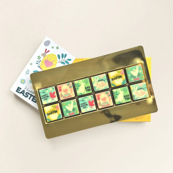 Schokoladenwürfel 12 Ostern | Vollmilch/Weiß | Geschenkbox | 132g