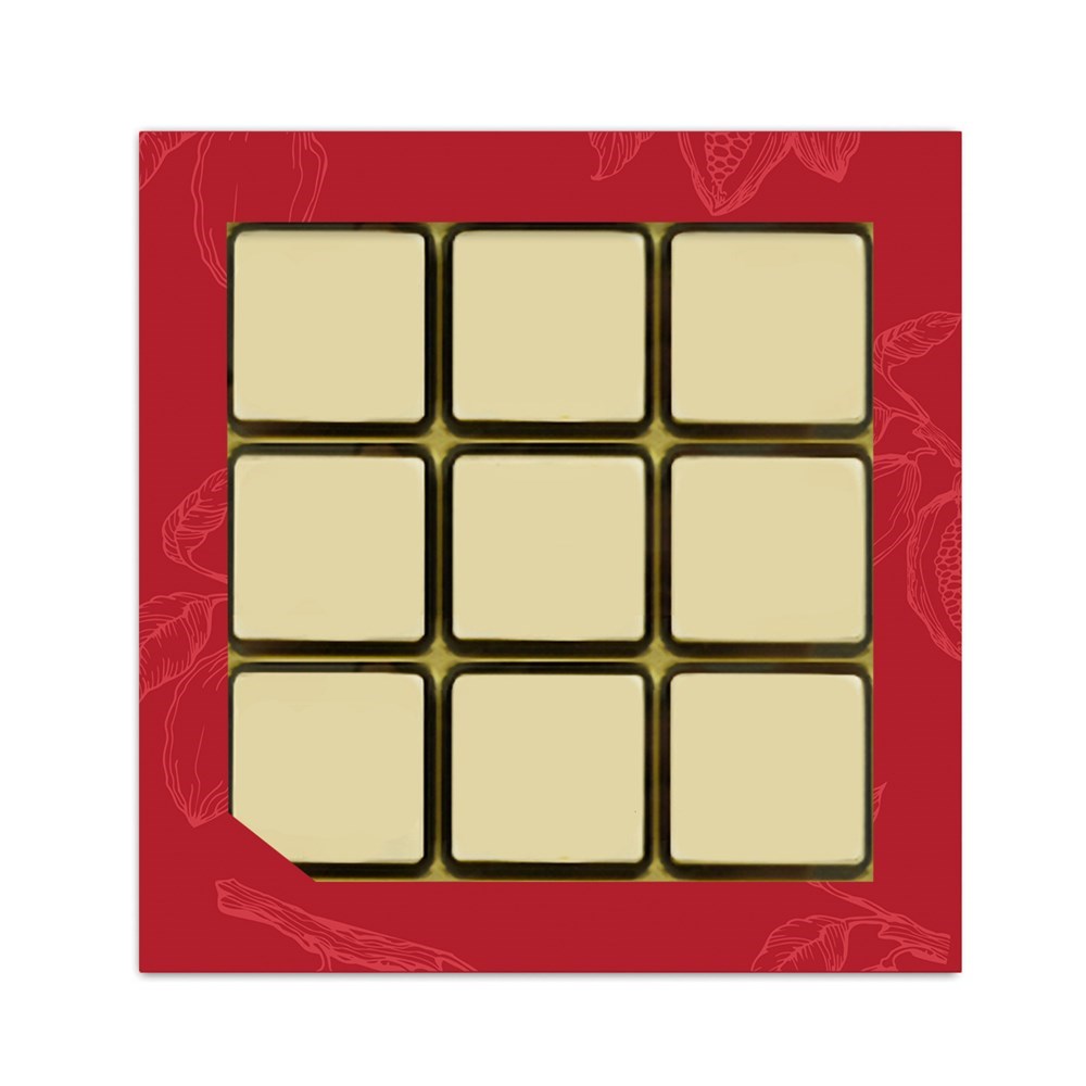 Rote Geschenkbox mit 9 Logo Blöckchen | Cocoa Horizons-zertifizierte Vollmilch- und weiße Schokolade von der belgischen Topmarke Barry Callebaut | Jedes gewünschte Logo/ Foto kann in Farbe gedruckt werden | Bei unterschiedlichen Logos pro Geschenkbox: + 10% Aufpreis |Ab 9.600 Stück, Preis auf Anfrage | Bestellbar ab 60 Stück | Schnelle Lieferung | Personalisierte Geschenkbox ab einer Menge von 500 Stück möglich | Einstellkosten gratis!