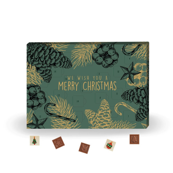 24 Tage Spaß beim Auspacken! Schokowürfel mit Weihnachtssternen, Weihnachtsbäumen, Rentieren und farbig bedruckten Weihnachtspralinen. Ein Fest zum Verschenken, aber definitiv ein Fest zum Auspacken. Jeden Tag in der Adventszeit wieder. Dieser Adventskalender ist aus 100% nachhaltig produzierter belgischer Schokolade mit Cocoa Horizons-Zertifizierung hergestellt.