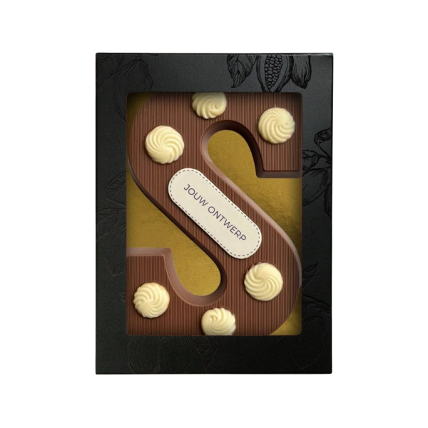 Der leckerste Schokobuchstabe aus den Niederlanden, hergestellt aus Cocoa Horizons-zertifizierter Vollmilchschokolade der belgischen Qualitätsmarke Barry Callebaut | Geliefert in einem goldenen Tray in einer hochwertigen Fensterschachtel | Der 235g Buchstabe ist dekoriert mit aufgespritzter Schokolade und einem eigenen Logo |Ab einer Menge von > 10.000 Stück, Preis auf Anfrage | Zu bestellen ab 10 Stück | Schnelle Lieferung | Kostenloses digitales Muster