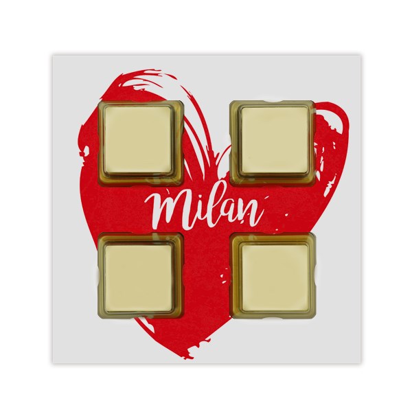 Entwerfen Sie Ihre eigene Einladung, Gruß- oder Glückwunschkarte mit vier Stück Schokolade mit eigenem Logo | Die Schokolade wird aus feinster Cocoa Horizons-zertifizierter Vollmilchschokolade mit einer Oberschicht aus weißer Schokolade der belgischen Qualitätsmarke Barry Callebaut hergestellt | In Full Color kann jedes gewünschte Firmenlogo, Design oder Foto gedruckt werden| Beidseitiges Bedrucken der Grußkarte möglich: + 10% Mehrkosten |Ab einer Menge von > 9.600 Stück, Preis auf Anfrage | Bestellbar ab 60 Stück | Schnelle Lieferung | Keine Einstellkosten!