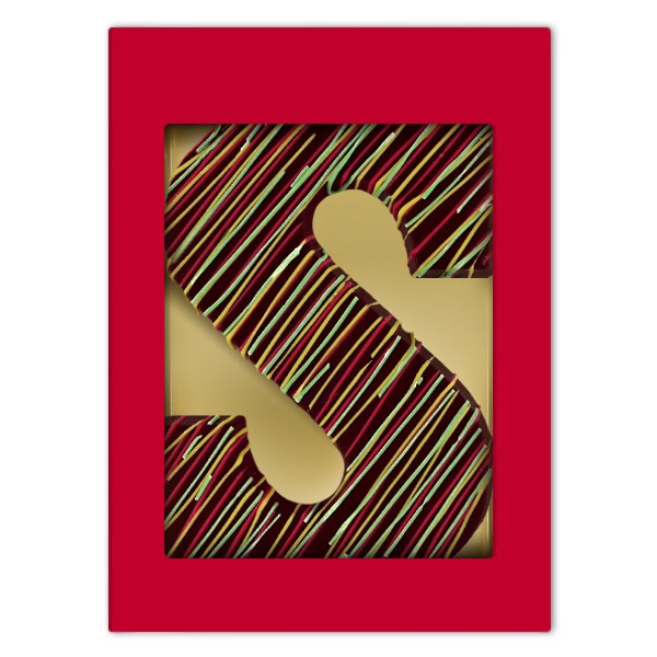 Luxuriöser Zartbitter Schokobuchstabe S mit Color Fun Streifen