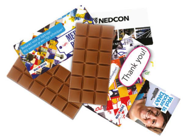 Schokoriegel von 100 Gramm aus Cocoa Horizons-zertifizierte Milchschokolade von der belgischen Topmarke Barry Callebaut | Personalisierte Verpackung, ganz nach Ihren Wünschen gedruckt | UVP: €3,48 pro Stück |Bestellbar ab 35 Stück | Schnelle Lieferung | Einstellkosten gratis!