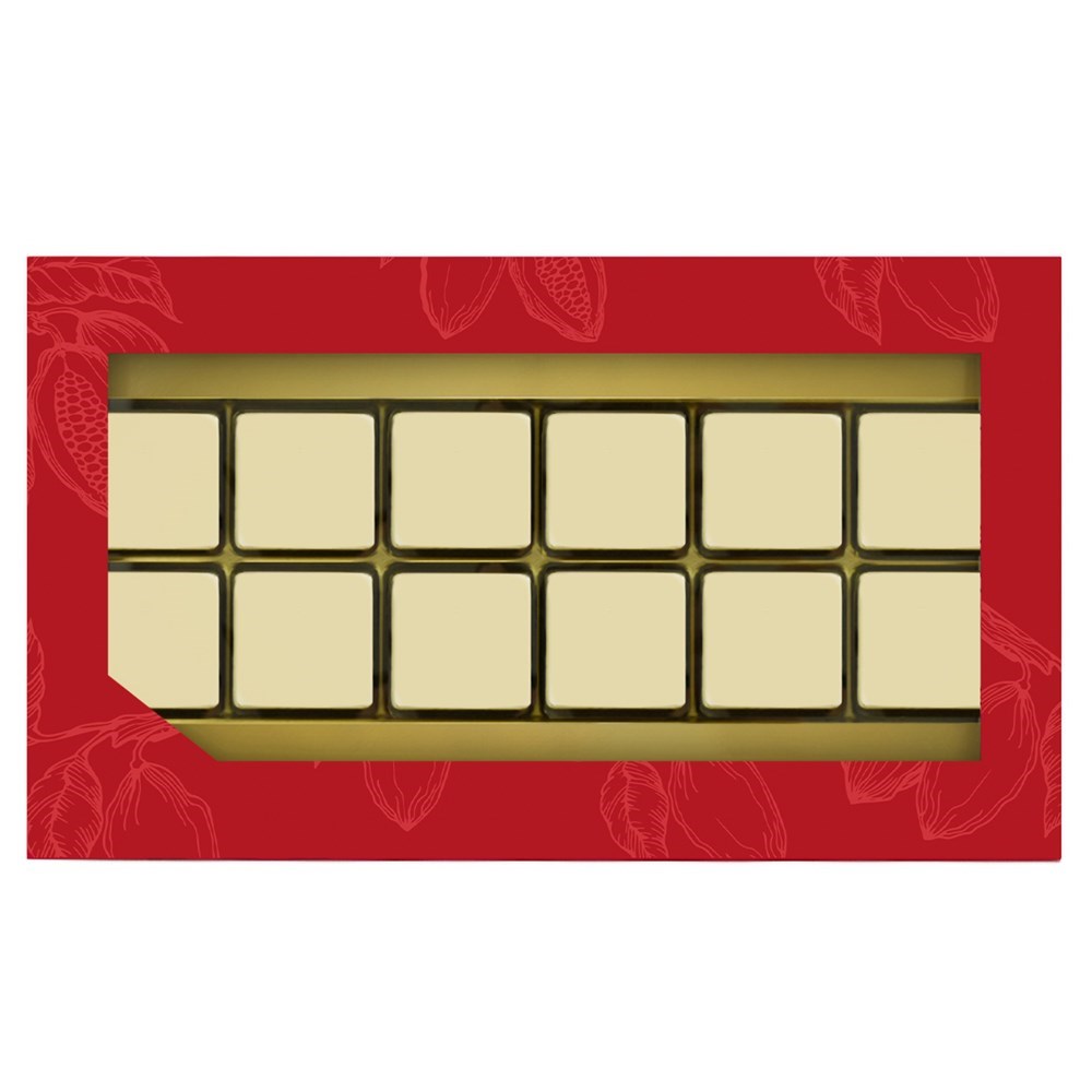 Rote Geschenkbox mit 12 Logo Blöckchen | Cocoa Horizons-zertifizierte Vollmilch- und weiße Schokolade von der belgischen Topmarke Barry Callebaut | Jedes gewünschte Logo/ Foto kann in Farbe gedruckt werden | Bei unterschiedlichen Logos pro Geschenkbox: + 10% Aufpreis |Ab 9.600 Stück, Preis auf Anfrage | Bestellbar ab 40 Stück | Schnelle Lieferung | Personalisierte Geschenkbox ab einer Menge von 500 Stück möglich | Einstellkosten gratis!