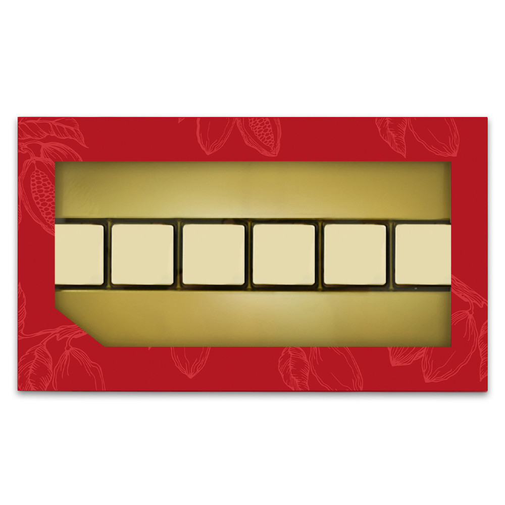 Rote Geschenkbox mit 6 Logopralinen | Cocoa Horizons-zertifizierte weiße Schokolade von der... mehr