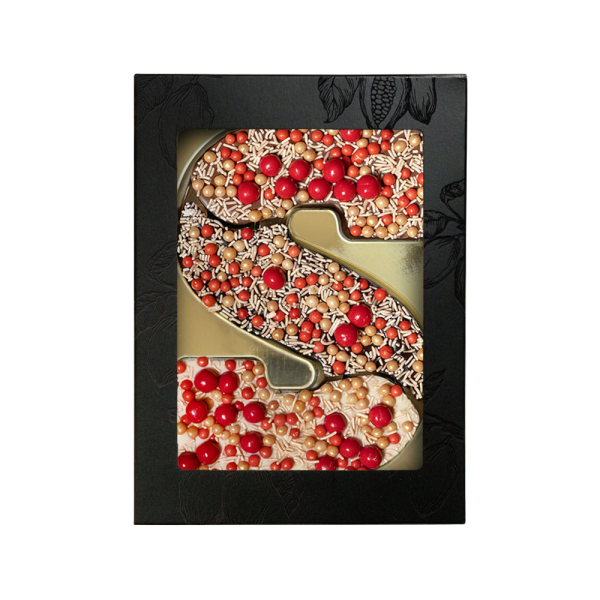 Luxus Schokoladenbuchstabe S drei Sorten Gold/Rot | Vollmilch/Weiß/Zartbitter | 240g