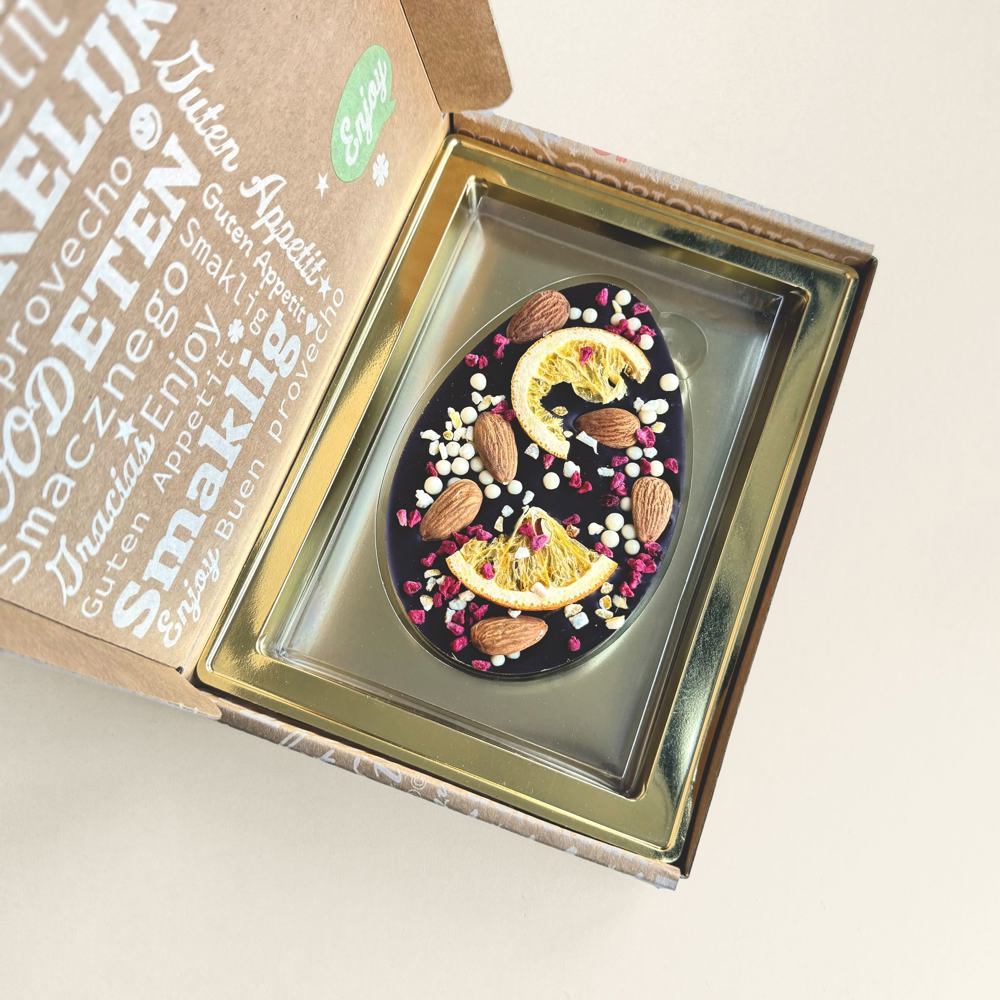 Luxus Schokoladen-Osterei mit Nüssen und Früchten | Zartbitter | Versandbox | 105g