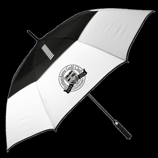 Robuster, leichter Golfregenschirm mit zweilagigem Schirm und Durchmesser von 162 cm. Stiel aus Glasfaser, öffnet auf Knopfdruck. Inklusive Schutzhülle.
