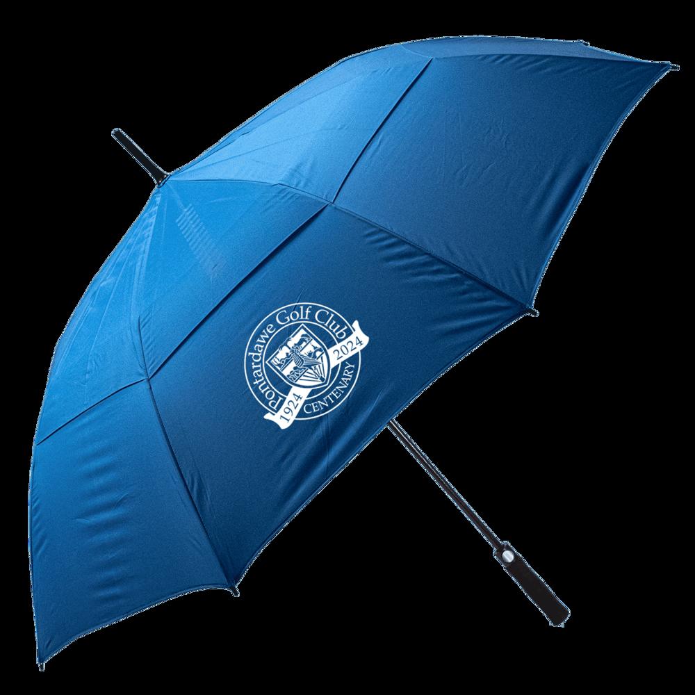 Robuster, leichter Golfregenschirm mit zweilagigem Schirm und Durchmesser von 162 cm. Stiel aus Glasfaser, öffnet auf Knopfdruck. Inklusive Schutzhülle und Doming unten am Griff
