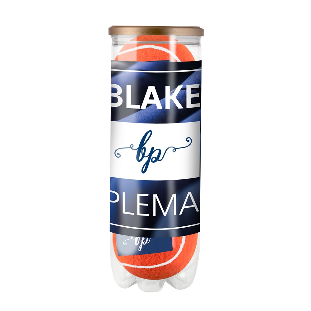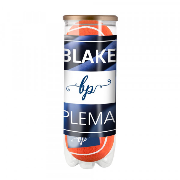 3 farbige bedrukte drucklose Tennisbälle, verpackt in transparenter Röhre mit Etikett rundherum.... mehr