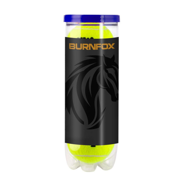 3 gasgefüllte Tennisbälle verpackt in transparenter Röhre mit Etikett rundum. ITF-zugelassen