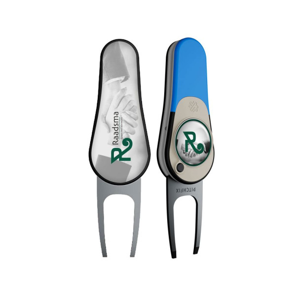 Leichte, automatische klappbare Pitchgabel aus hochwertigem ABS-Kunststoff, inkl. magnetischem Golfballmarker mit Doming und euroskala Druck an der Rückseite