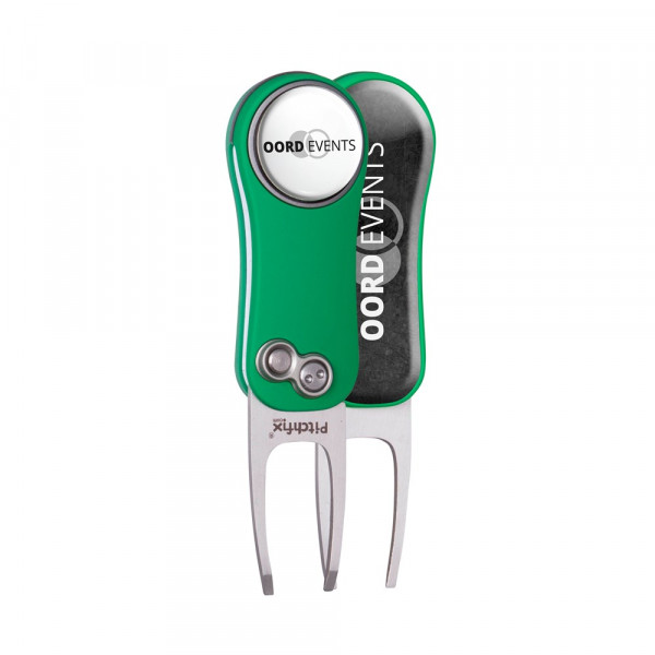 Leichte, automatische klappbare Pitchgabel aus Aluminium mit ABS-Gummigrif, inkl. magnetischem Golfballmarker mit Doming und großem Doming an der Rückseite