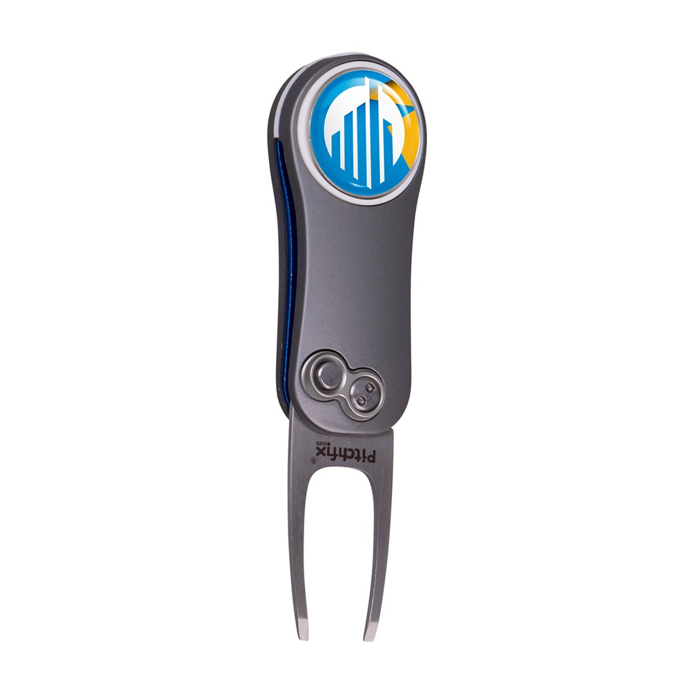 Leichte, automatische klappbare Pitchgabel aus Aluminium mit ABS-Gummigriff, inkl. magnetischem Golfballmarker mit Doming und Spitzer