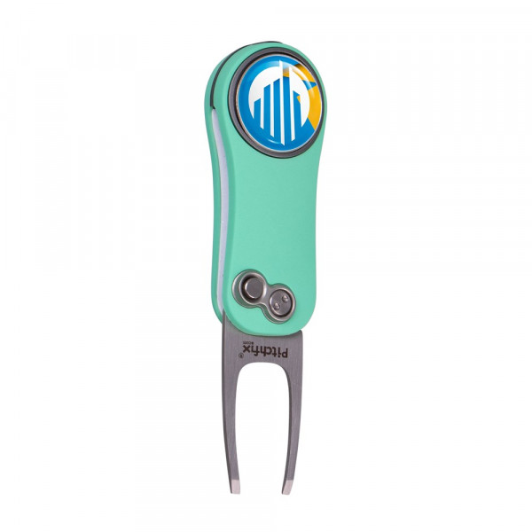 Leichte, automatische klappbare Pitchgabel aus Aluminium mit ABS-Gummigriff, inkl. magnetischem Golfballmarker mit Doming und Spitzer