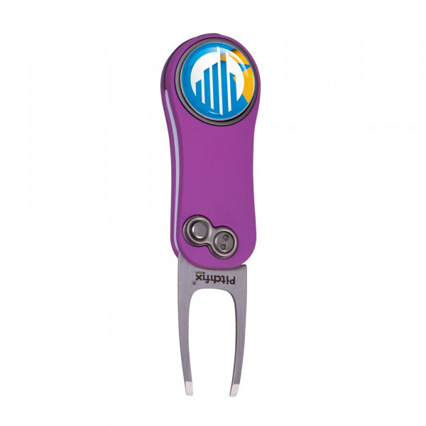 Leichte, automatische klappbare Pitchgabel aus Aluminium mit ABS-Gummigriff, inkl. magnetischem Golfballmarker mit Doming und Spitzer