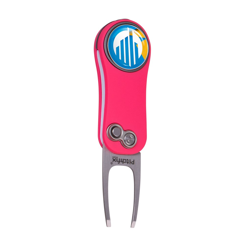 Leichte, automatische klappbare Pitchgabel aus Aluminium mit ABS-Gummigriff, inkl. magnetischem Golfballmarker mit Doming und Spitzer