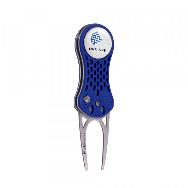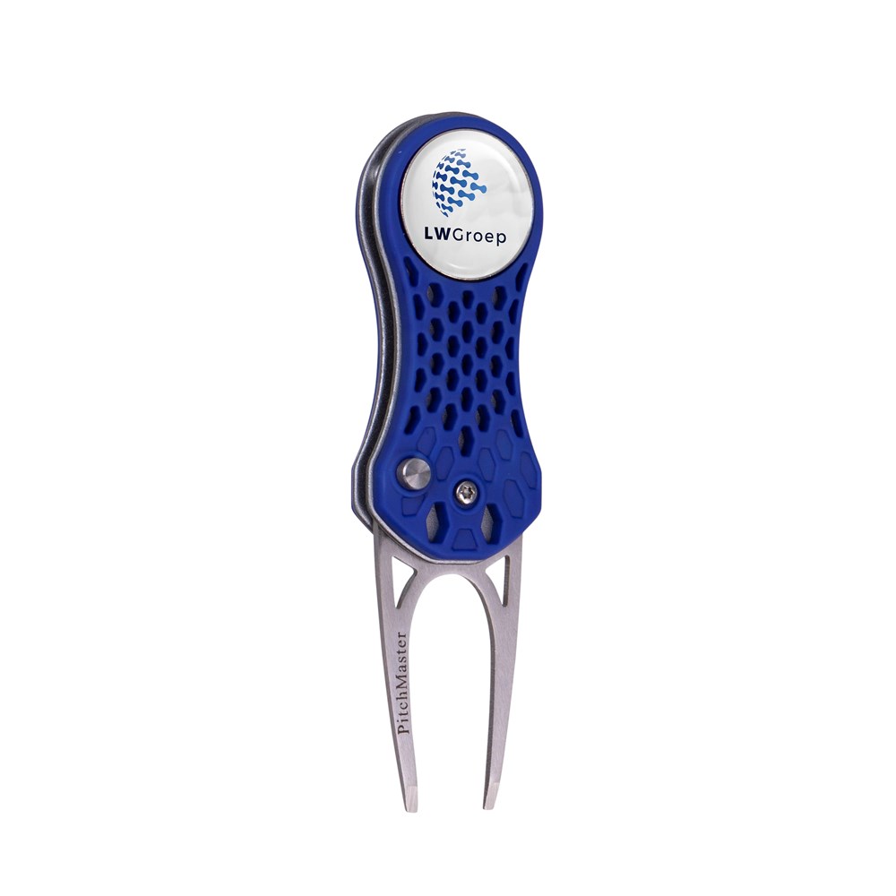 Leichte Pitchgabel aus Aluminium mit Kunststoffgehäuse und automatischem klappsystem, inkl. magnetischem Golfballmarker mit Doming