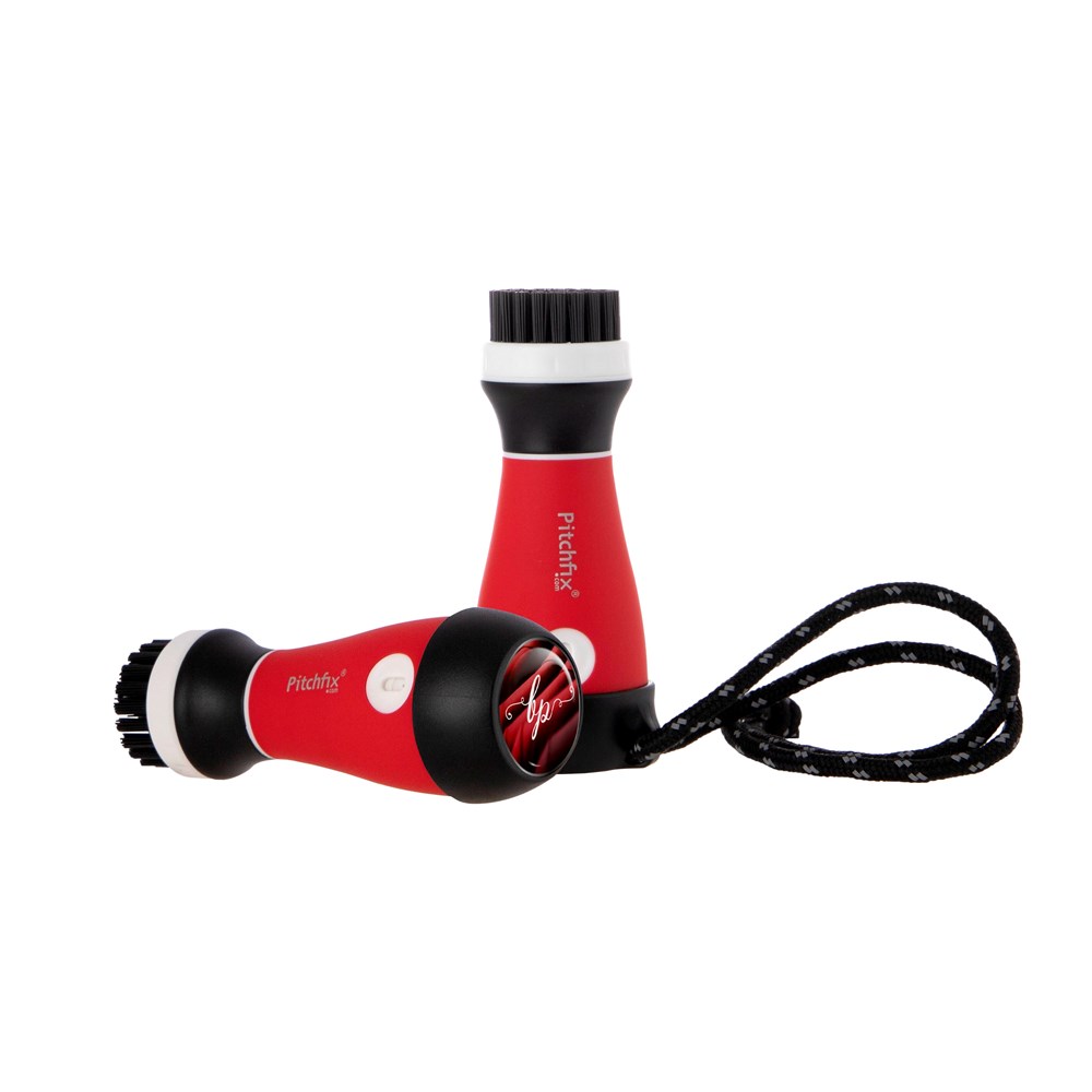 Reinigungsbürste aus Kunststoff mit Wasserbehälter und Spritzkopf. Ausgestattet mit einem auswechselbaren Bürstenkopf, Schnur und Doming