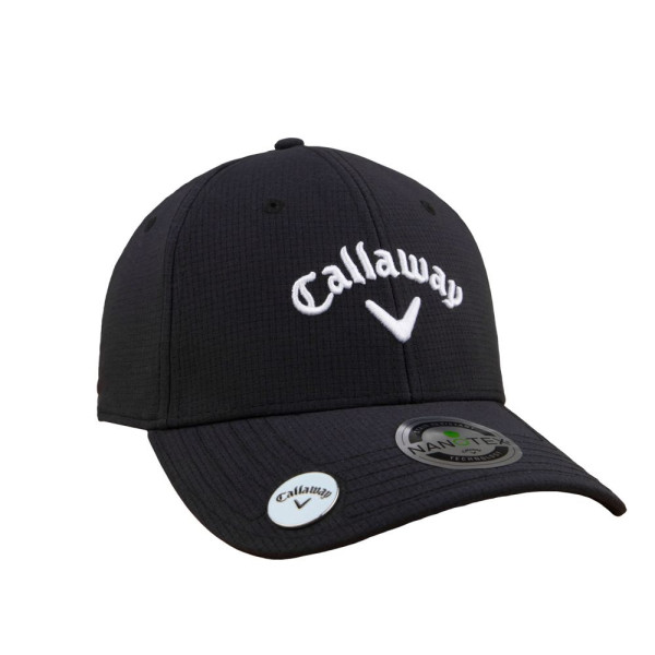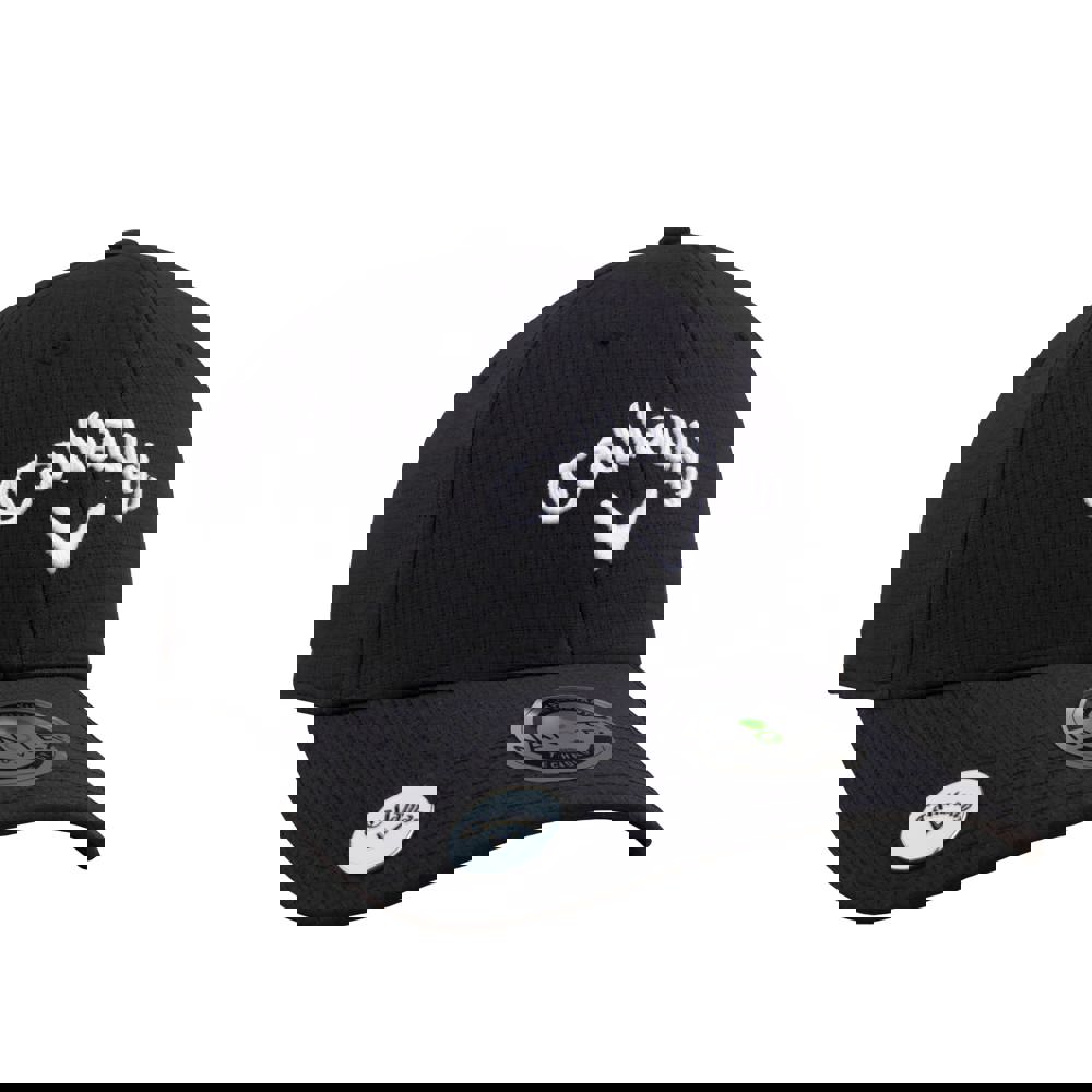 Medium profile Cap aus Polyester mit Klettverschluß inkl. magnetischem Golfballmarker an der Kappe. Logo Callaway vorne und Logo Odyssey hinten aufgestickt. Kopfgroße 58 cm