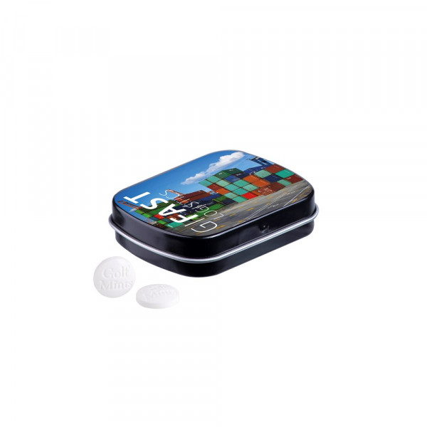 23 g Pfefferminz in eine Dose, inklusive Zutatenaufkleber und einzeln eingesleevt. Format 59 x 46 x 18,5 mm. Haltbarkeit 24 Monate