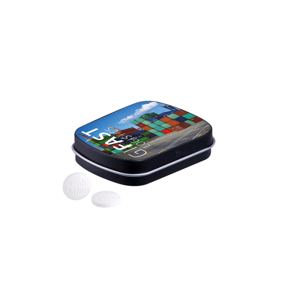 23 g Pfefferminz in eine Dose, inklusive Zutatenaufkleber und einzeln eingesleevt. Format 59 x 46 x 18,5 mm. Haltbarkeit 24 Monate