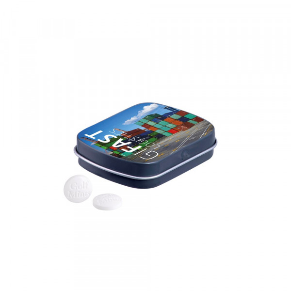 23 g Pfefferminz in eine Dose, inklusive Zutatenaufkleber und einzeln eingesleevt. Format 59 x 46 x 18,5 mm. Haltbarkeit 24 Monate