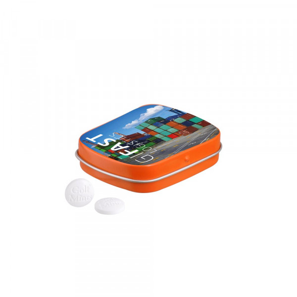 23 g Pfefferminz in eine Dose, inklusive Zutatenaufkleber und einzeln eingesleevt. Format 59 x 46 x 18,5 mm. Haltbarkeit 24 Monate