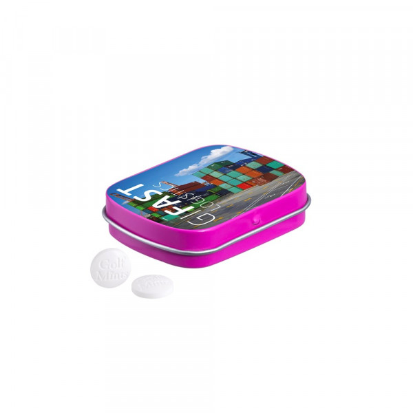 23 g Pfefferminz in eine Dose, inklusive Zutatenaufkleber und einzeln eingesleevt. Format 59 x 46 x 18,5 mm. Haltbarkeit 24 Monate