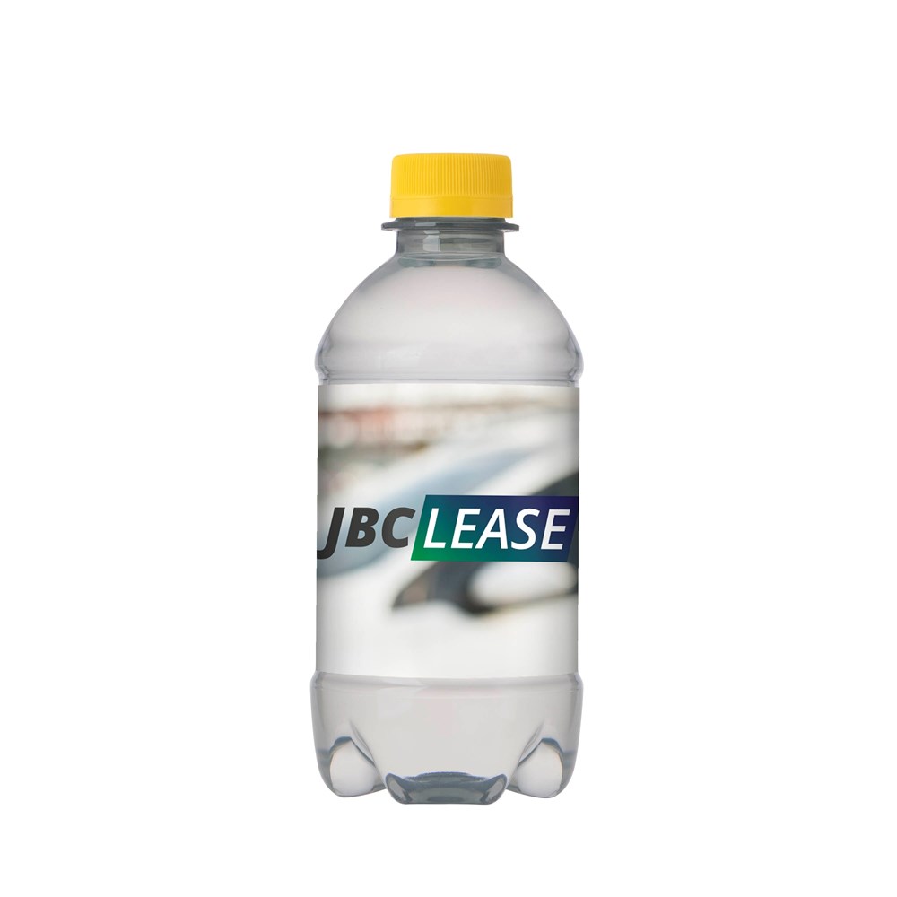 330 ml Quellwasser in einer transparenten Flasche mit Drehverschluß, Flasche aus 100% recyceltem Plastic (R-PET), inklusive Kunststoff Etikett rundum