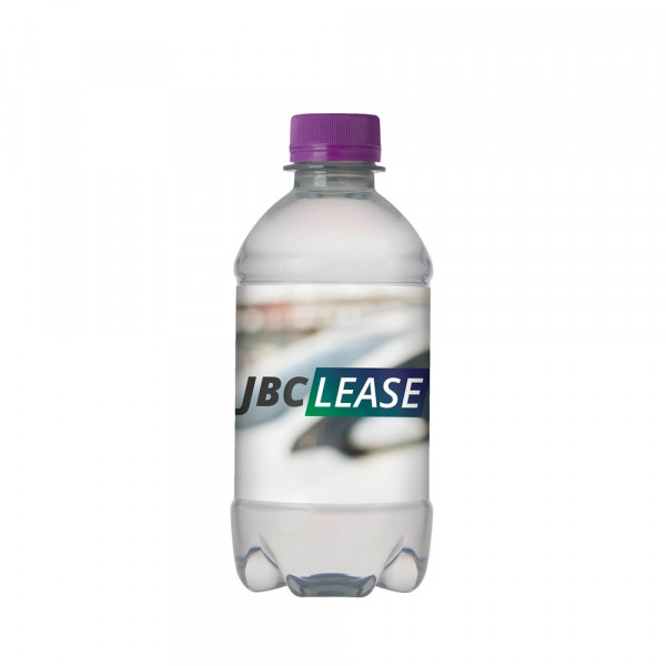 330 ml Quellwasser in einer transparenten Flasche mit Drehverschluß, Flasche aus 100% recyceltem Plastic (R-PET), inklusive Kunststoff Etikett rundum